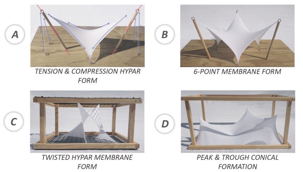 Abstract: The aim of this research is to investigate and develop a script for a lightweight membrane structure. The research investigation seeks to understand the types of membrane forms and the process of finding such forms through empirical experimentation. The outcome of this project is to present an optimized membrane structure through computational form-finding which can be visualised in a real-life setting.